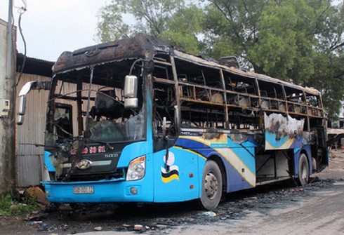 Xe khách bốc cháy trơ khung ở Đồng Nai. |