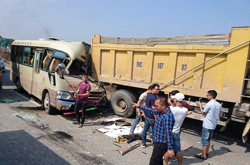 Tai nạn khiến chiếc xe khách bị móp méo, vỡ nát hết phần đầu, kính bắn tung tóe, đồ đạc trên xe rơi vãi ra đường. Bước đầu xác định, tài xế điều khiển chiếc xe khách đã tử vong, một số người khác bị thương nặng.