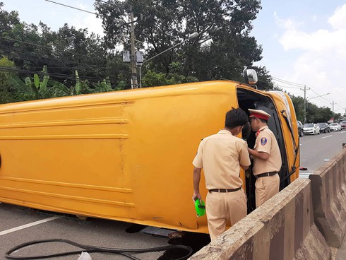 Khi đến đoạn thuộc phường Mỹ Phước, thị xã Bến Cát, xe bị nổ bánh, mất lái rồi lật ngang giữa đường.