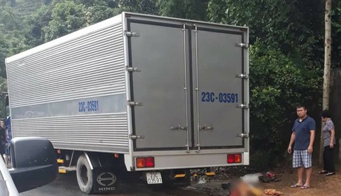 Xe máy dừng giữa đường bị xe tải đâm, 2 người thương vong