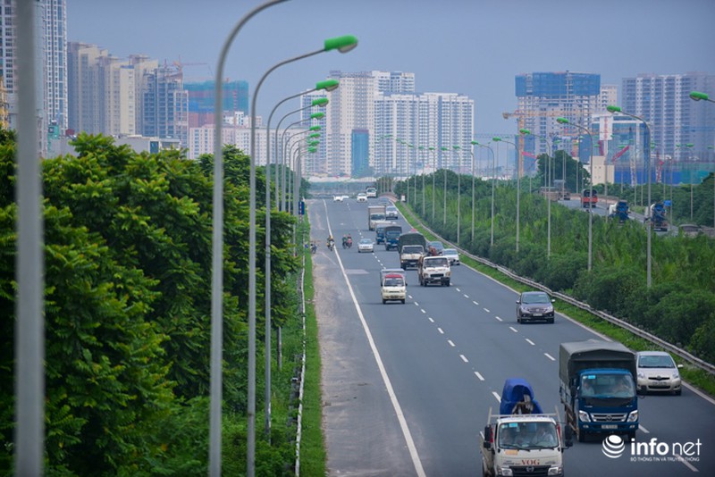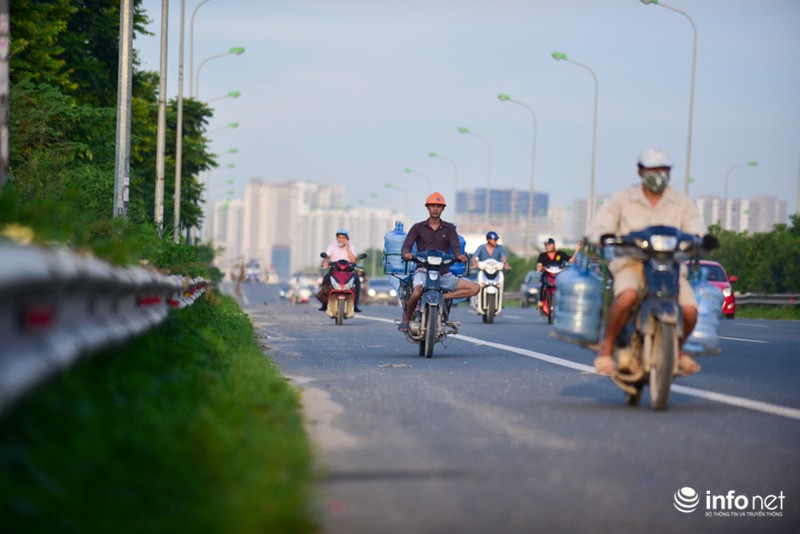 Càng gần đến giờ tan tầm, lượng xe máy lưu thông vào phần đường cao tốc Đại lộ Thăng Long càng nhiều. |