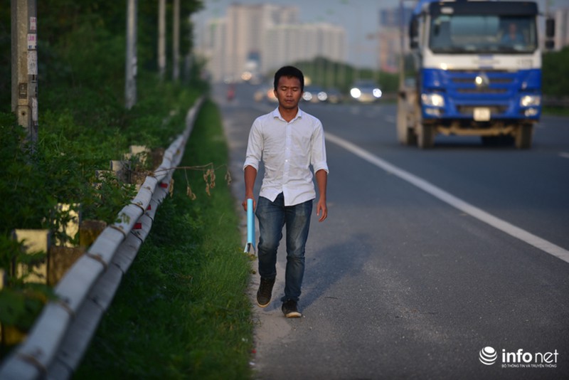 Không chỉ xe máy, nhiều người đi bộ cũng di chuyển trong phần đường cao tốc. Thậm chí, nhiều xe khách cũng sẵn sàng trả khách ngay trên đường cao tốc. |