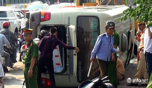Tuy nhiên, khi xe đi đến đoạn trên đường đê Nguyễn Khoái, quận Hai Bà Trưng, Hà Nội bất ngờ bị lật ngang ra giữa đường. Thời điểm xảy ra vụ tai nạn trên xe có nhiều hành khách. May mắn các hành khách chỉ bị thương nhẹ.