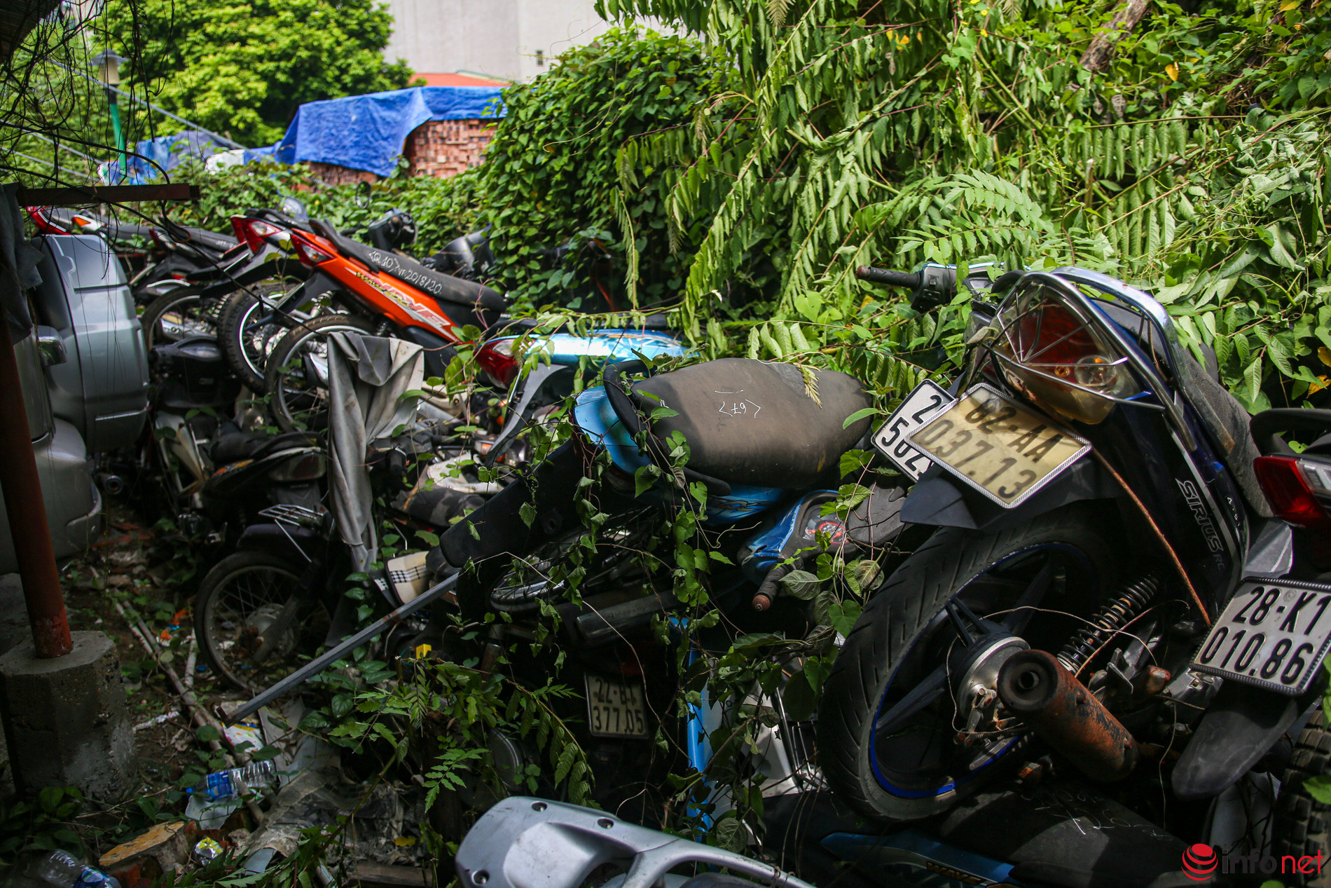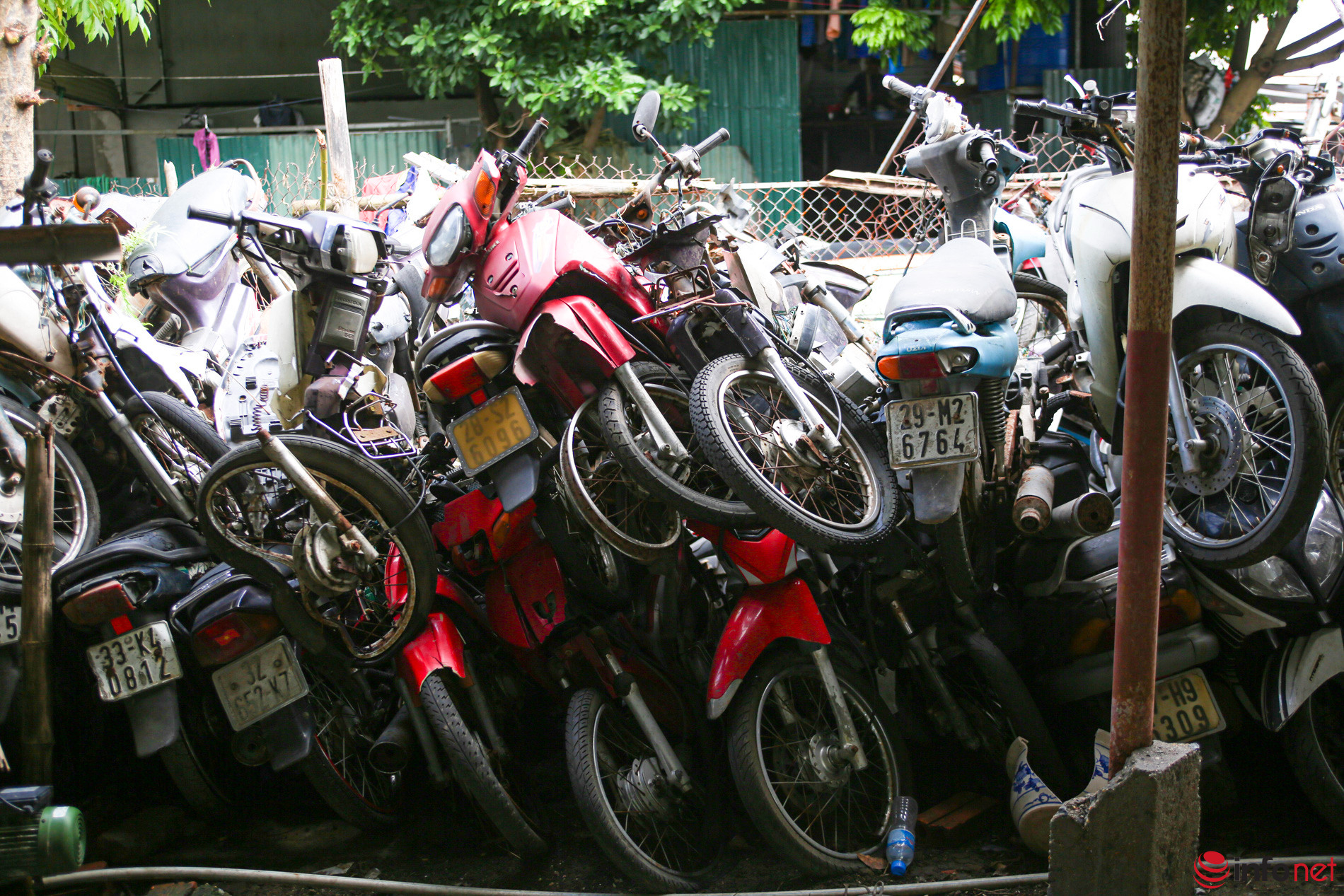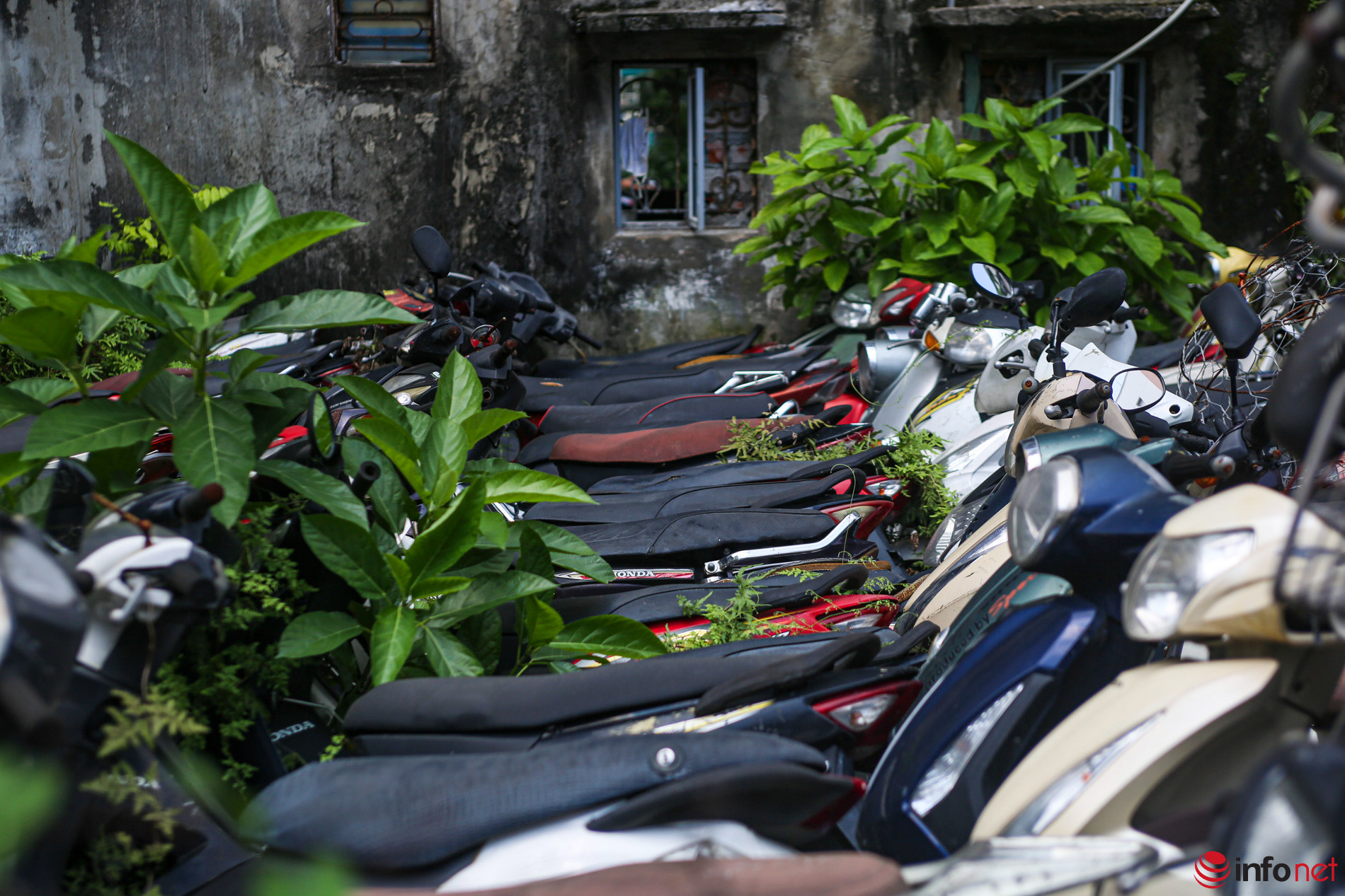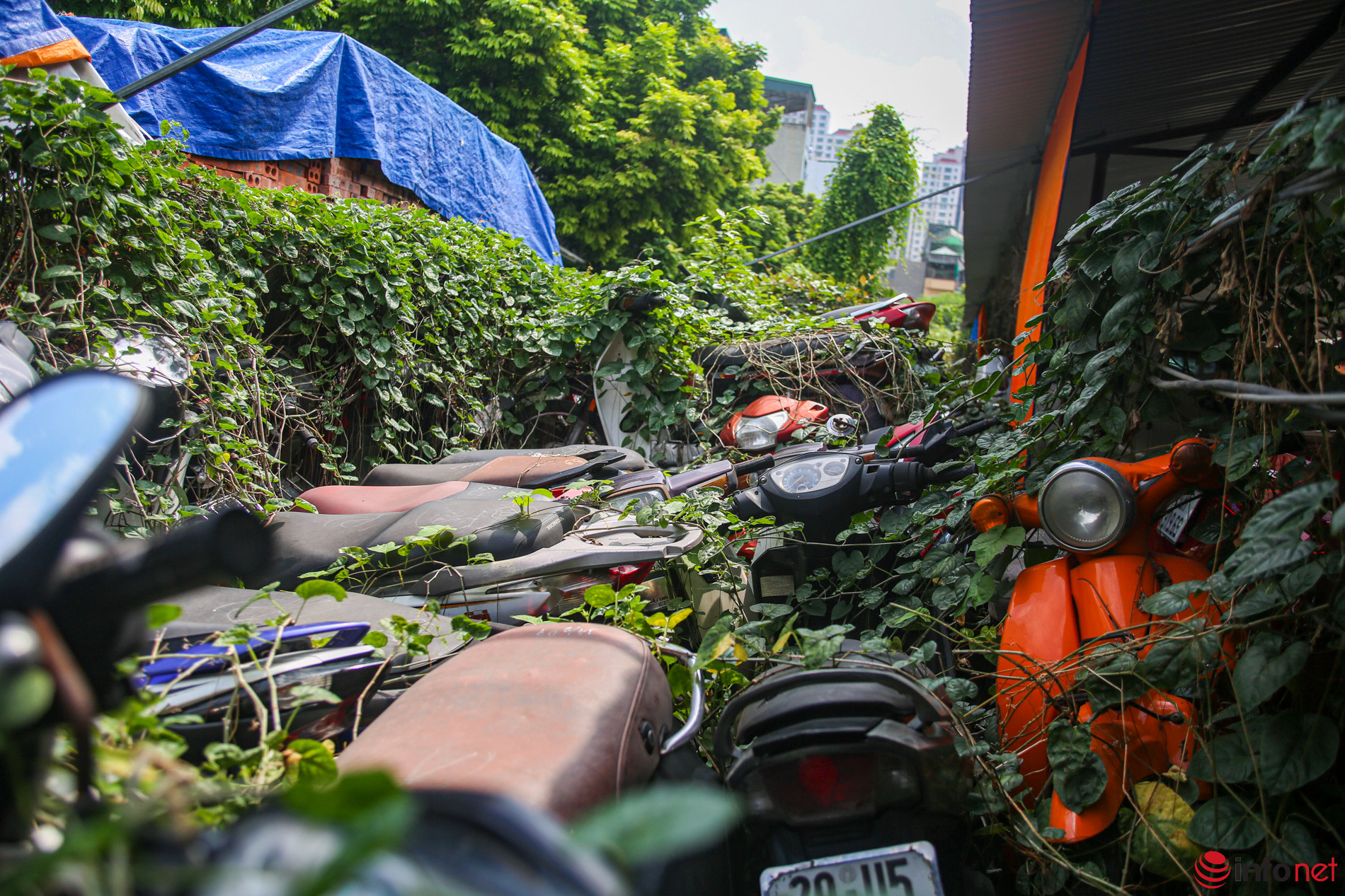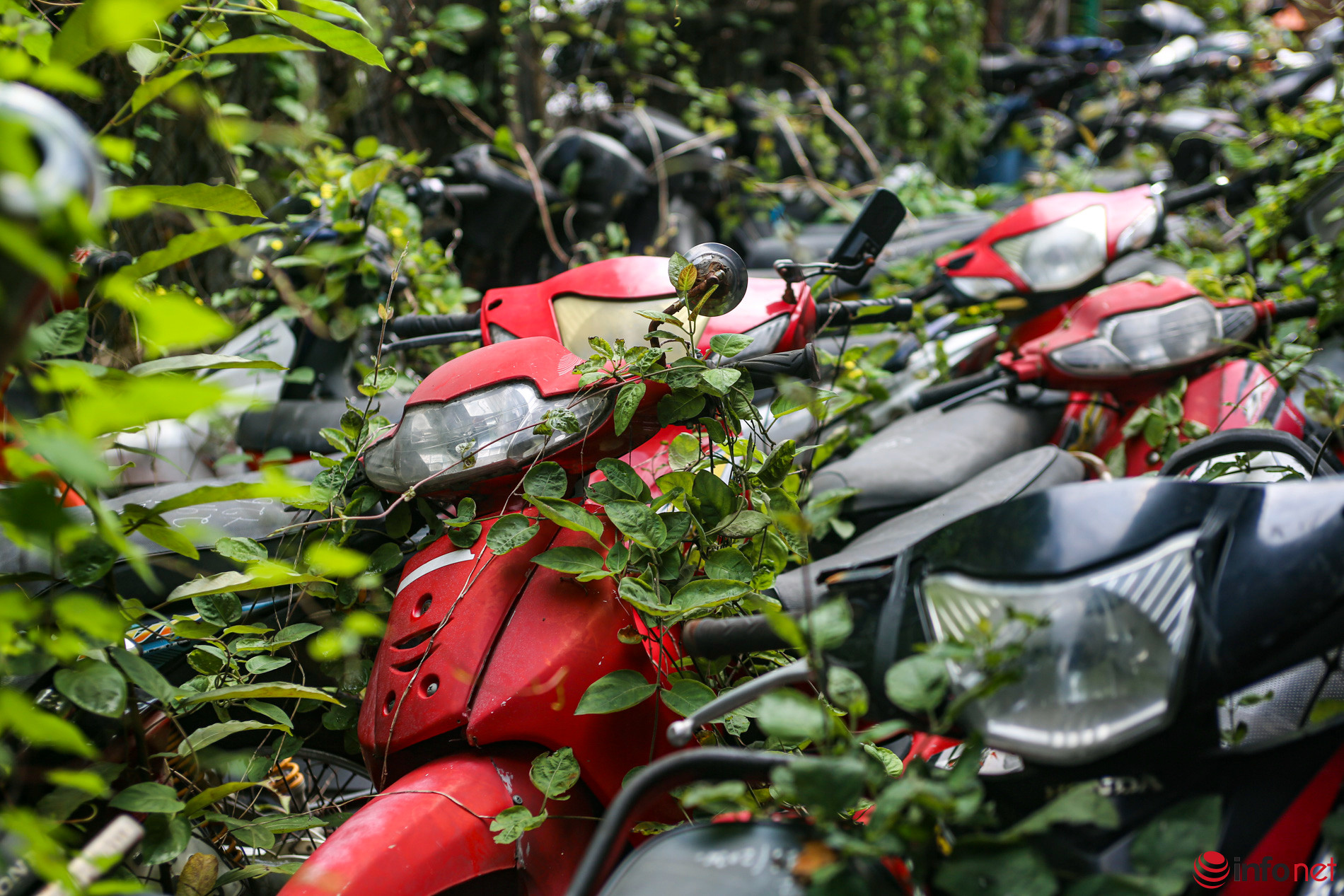Theo ghi nhận của PV Infonet, tại bãi xe của Công ty Hà Cầu - Thăng Long, đơn vị ký hợp đồng trông giữ xe vi phạm, xe tai nạn với công an một số quận, Đội CSGT và một số Tổ công tác đặc biệt 141 Công an TP Hà Nội, hàng nghìn chiếc xe máy đủ loại từ mới đến cũ nát được tập kết, chất đống.Do xe để lâu ngày trong bãi, không có người thường xuyên dọn dẹp nên cỏ cây mọc um tùm, dây leo bám đầy các phương tiện.Tại bãi xe số 1 của Công ty Hà Cầu - Thăng Long có khoảng hơn 2 nghìn chiếc xe như thế này.Các xe được tập kết ở đây có đủ chủng loại, nhãn hiệu. Không ít xe thuộc dòng xe đắt tiền, cao cấp như Honda SH, Vespa LX...Tuy nhiên, những các loại xe bị bỏ lại đa số có trị giá dưới 10 triệu đồng như Wave, Dream...Theo đại diện của bãi xe này, đa số các loại xe bị bỏ lại đều có giá trị thấp, mức phạt quá tiền giá trị xe nên chủ nhân bỏ lại.Cũng có những chiếc xe đắt tiền như Honda SH cũng chưa có người đến nhậnDo bỏ lại lâu ngày, nhiều chiếc xe ba bánh theo thời gian bị hoen rỉ, hỏng hóc.Theo đại diện chủ bãi xe, hơn ba năm trở lại đây bãi trông giữ xe vi phạm chưa thể đấu giá thanh lý chiếc xe nào vì nhiều lý do như dịch Covid-19; thủ tục từ tạm giữ đến thanh lý một chiếc xe không hề đơn giản.Giám đốc của Công ty Hà Cầu - Thăng Long, các xe vi phạm tại đây, chỉ có khoảng 60% người dân đến nhận. 40% để lâu ngày cỏ dây leo phủ kín Cách đó khoảng 700 mét, một bãi xe khác cũng của Công ty Hà Cầu - Thăng Long, có khoảng hơn 1.000 chiếc xe vi phạm giao thông đang phơi nắng, phơi mưa không được chủ nhân đến lấy.Hàng nghìn chiếc xe máy vi phạm chất đống.Theo quy định pháp luật hiện hành, thời hạn tạm giữ phương tiện là 7 ngày. Từ ngày 1/5/2020, Nghị định 31/2020/NĐ-CP có hiệu lực quy định, nếu người vi phạm không đến giải quyết, đơn vị tạm giữ phương tiện sẽ tiến hành các thủ tục xác minh để tìm chủ sở hữu.Cụ thể, trong ba ngày kể từ ngày hết thời hạn tạm giữ xe vi phạm hành chính, nếu người vi phạm không đến nhận, cảnh sát phải thông báo trên phương tiện thông tin đại chúng và niêm yết công khai tại trụ sở trong 30 ngày. Sau đó, cảnh sát sẽ tịch thu xe vi phạm bán thanh lý.