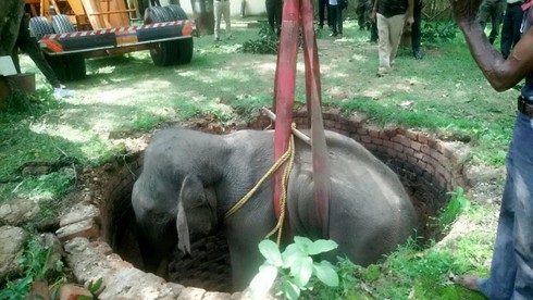 Giải cứu voi khổng lồ rơi xuống giếng sâu 6 mét |