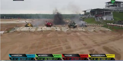 Chung kết Tank Biathlon 2019 tại Nga, 4 đội Nhóm 1 gồm Nga, Belarus, Kazakhstan, Azerbaijan (Nguồn Tvzvezda) |