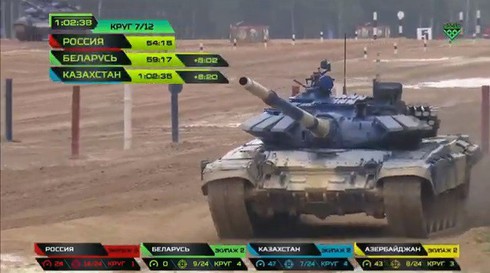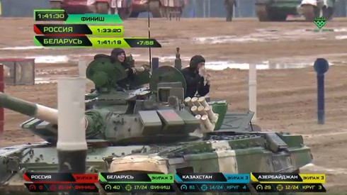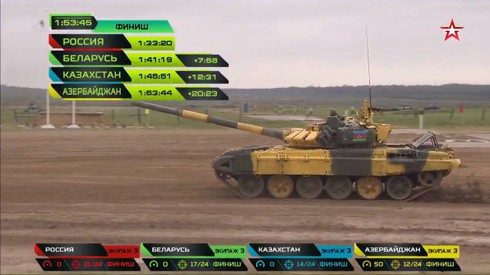 Sau 2 giờ tranh tài, đội tuyển Nga về đích đầu tiên với tổng thời gian của 3 kíp xe là 1h33p20, cụ thể kíp xe số 1 của tuyển Nga đạt thành tích 29p24, kíp số 2 đạt 30p41, kíp số 3 đạt 33p15. Hạ được 21/24 bia.