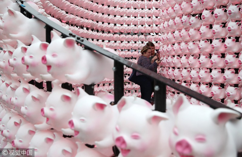 Những chú heo dễ thương, biểu tưởng của Năm mới Kỷ Hợi 2019 được trưng bày ởSydney, Australia. |