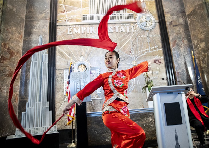Điệu múa truyền thống được tái hiện ở tòa nhà Empire State tại Manhattan, Mỹ. |