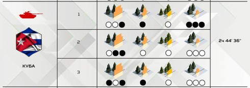 Đội xe tăng Cuba có thành tích thi đấu bán kết Tank Biathlon 2019 với tổng thới gian 2h44p36, hạ được 10/24 bia.