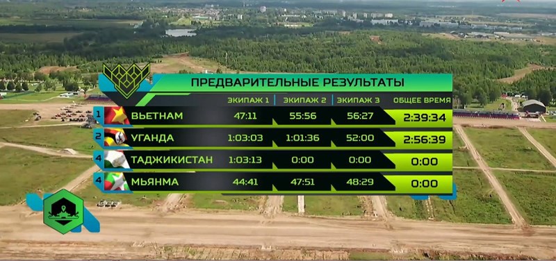 Kết quả trận bán kết Tank Biathlon hôm 11/8, Việt Nam đứng nhất bảng. |
