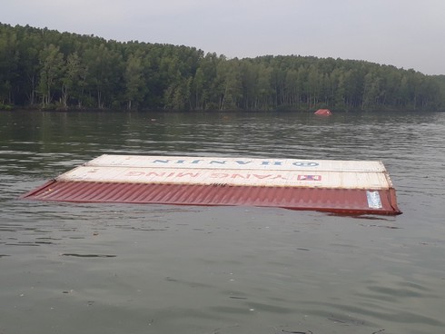 Container trôi nổi trên sông Lòng Tàu sau sự cố tàu chìm. |
