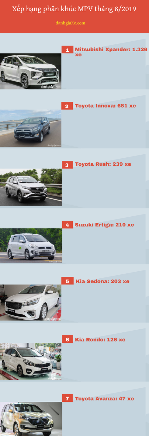 Top xe MPV bán chạy nhất tháng 8/2019. (Infographic: danhgiaxe.com) |