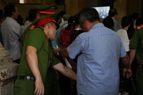 Tham gia phiên tòa này còn có khoảng 60 luật sư cùng hơn 300 cá nhân, tổ chức có quyền lợi và nghĩa vụ liên quan. Do vậy, tới gần 9h, việc kiểm tra an ninh mới kết thúc, những người tham gia phiên tòa phải qua kiểm tra giấy tờ tùy thân bằng cổng từ và thiết bị kiểm tra cầm tay.