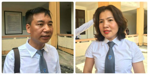 Luật sư Nguyễn Thị Đinh Hương (đứng) và Luật sư Nguyễn Danh Huế (ngoài cùng bên trái). |