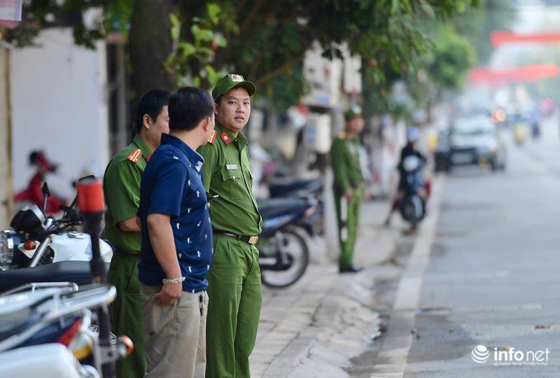 CSGT được huy động tham gia bảo vệ quanh khu vực trụ sở tòa án tỉnh. |