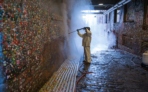 Họ sẽ sử dụng máy hơi nước công nghiệp để làm sạch những bã kẹo cao su nhằm bảo tồn những bức tường.