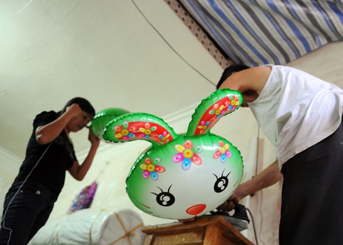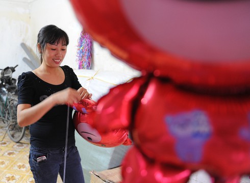 Cũng thật vất vả khi mọi người đang nô nức đi chơi thì những người bán bóng bay lại đang âm thầm làm việc với cường độ cao hơn cả ngày thường. |
