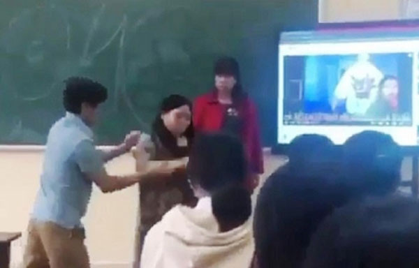 Cũng theo em học sinh này thì việc thầy P. đưa cô H.T.T ra khỏi lớp là bình thường nhưng trong clip là đúng lúc cô H.T.T đưa tay lên nên mới khiến người xem xôn xao.