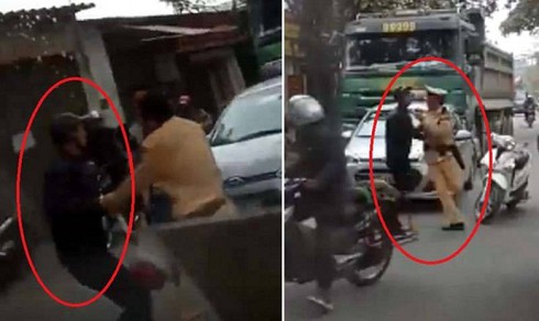 Mới đây, trên mạng xã hội lan truyền đoạn clip ghi lại hình ảnh một chiến sĩ CSGT trên địa bàn Hà Nội đang chặn xử lý chiếc xe tải vi phạm thì bị 2 đối tượng lao vào giằng co, cản trở việc xử lý.