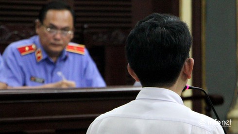 Đại diện Viện kiểm sát thẩm vấn bị cáo Nguyễn Minh Hùng. |