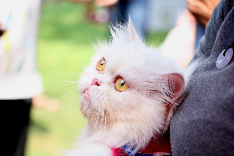 Nếu không có cô chủ bên cạnh, hẳn nhiều người sẽ lầm tưởng đây là một cục bông trắng đang lăn trên đám cỏ.