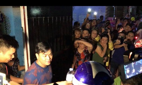 Phúc XO bị công an dẫn giải lên xe, sau khi khám xét nơi ở. |