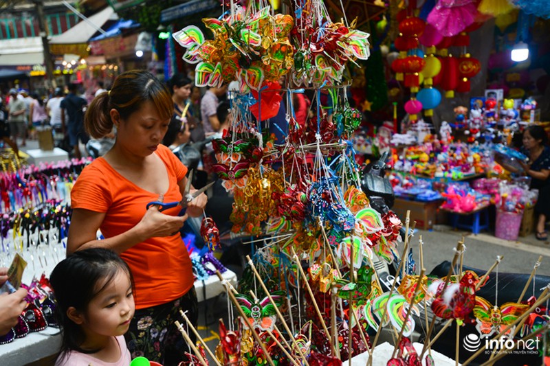 Chỉ còn mấy ngày nữa là đến Tết Trung thu. Những ngày này, phố Hàng Mã trở nên nhộn nhịp, tấp nập người mua kẻ bán. |