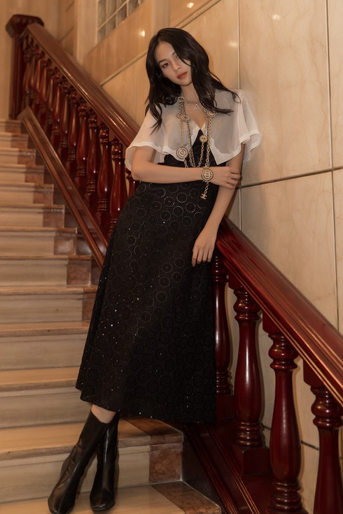 Xuất hiện trên thảm đỏ trước show diễn, Phí Phương Anh gây ấn tượng mạnh với chiếc đầm liền lấp lánh cùng áo khoác crop top hờ hững bên ngoài. Set đồ khá nhẹ nhàng, đơn giản nhưng được cô nàng nhấn nhá thêm với những món phụ kiện độc đáo. Được biết, set đồ của Phí Phương Anh đều là những thiết kế đến từ nhà mốt Chanel với tổng giá trị lên đến nửa tỷ đồng.