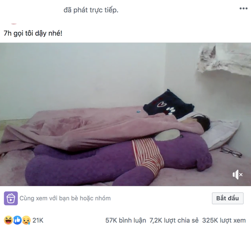 Mới đây nhất, một tài khoản facebook sau khi livestream giấc ngủ dài hơn 6 giờ đồng hồ của mình với dòng trạng thái "7h gọi tôi dậy nhé" đã thu hút 7.000 lượt chia sẻ, 21.000 lượt like và hơn 300.000 lượt xem.