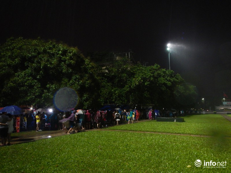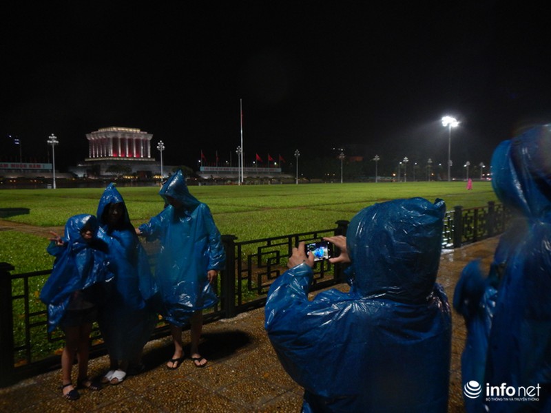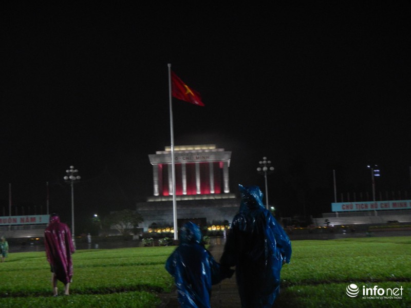 Tối 19/5, rất đông người dân tụ tập tại quảng trường Ba Đình để chờ đón giây phút lễ chào cờ nhân ngày sinh Bác Hồ 19/5. Gần đến 21h, cơn mưa rào lớn bất chợt đổ xuống khiến nhiều người phải bỏ dở. |