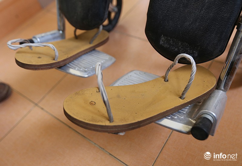 Đôi dép đặc biệt của chị hầu hết là xin lại dép cũ của mọi người rồi cắt quai, buộc lại dây. "Vừa tối qua tôi bị ngã trong nhà tắm bởi đôi dép cao su này đã mòn đế. May mà mình thấp nên ngã cũng không đau" - chị Đào vui vẻ kể lại như đó là một câu chuyện đùa. |