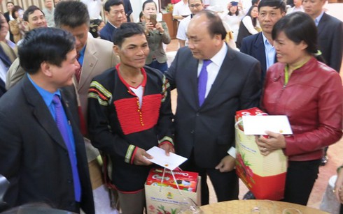 Cũng tại Đắk Lắk, Thủ tướng đã đến thăm hỏi, chúc Tết, trao quà cho các công nhân lao động tiêu biểu có hoàn cảnh khó khăn trên địa bàn tỉnh. Thủ tướng đã trao tận tay quà Tết cho 100 công nhân, viên chức, người lao động nghèo.