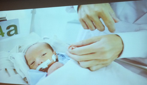 Ngày 17/7, lần đầu tiên chị D. đã được sang Bệnh viện Nhi đồng để gặp con. Hai vợ chồng không kìm được xúc động và niềm vui khi cầm bàn tay nhỏ bé của đứa con đầu. Cậu bé phát triển tốt, không phải thở máy, tăng cân và bú được 30ml sữa.