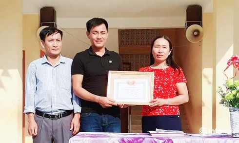Ban Giám hiệu trường Tiểu học Hùng Thành và trường THPT Phan Thúc Trực (huyện Yên Thành) đã tổ chức tuyên dương, tặng giấy khen cho 2 thầy giáo. |