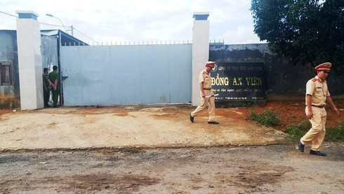 Lực lượng công an khám xét tại khu nhà xưởng của Công ty Xuất nhập khẩu Đồng An Viên. |