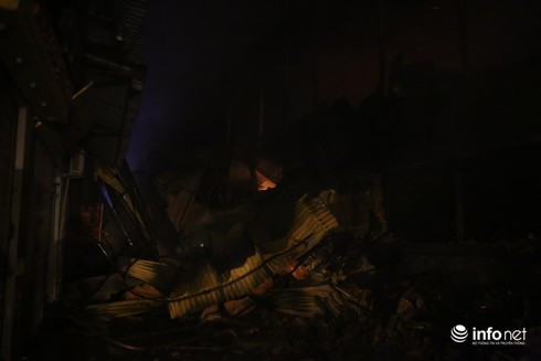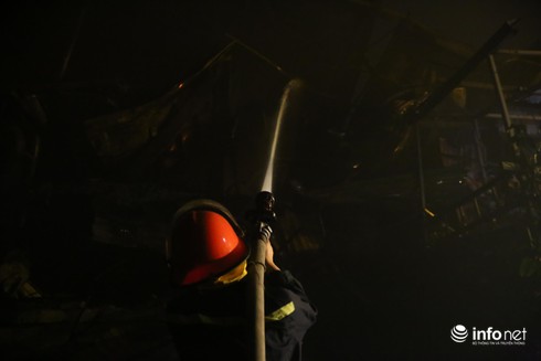 Đến 23h15, đám cháy cơ bản được khống chế,nhưng bên trong khu nhà xưởng vẫn còn những khu cháy âm ỉ.