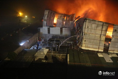Do diện tích của nhà xưởng rất lớn, lửa cháy bao trùm tứ phía, nên chỉ huy công tác chữa cháy, cứu hộ, cứu nạn cũng phải triển khai theo phương án "bao vây, khống chế" đám cháy theo "hình tròn".