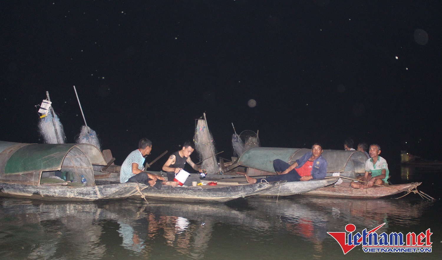Giữa màn đêm tĩnh lặng, hàng chục người tập trung ở một khúc sông cười nói vui vẻ, chờ đến lượt thay nhau buông lưới. Thông thường mỗi lần buông rồi thu lưới mất khoảng 30 phút đến 1 tiếng đồng hồ.