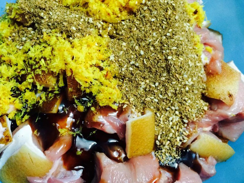 + Bột nghệ, vừng xay với hạt dổi, gia vị, dầu hào, đường, dầu ăn.