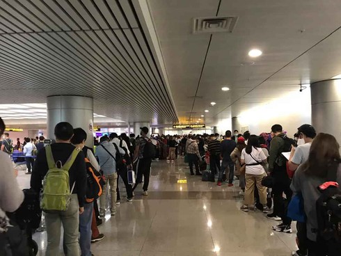 Hành khách xếp hàng tại một sân bay chờ khai báo y tế trước ngày Ý phong tỏa toàn quốc. |