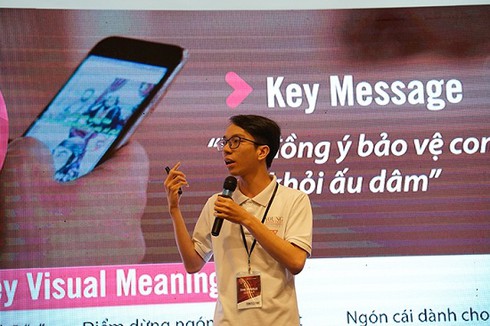Phan Minh Cường mở đầu buổi thuyết trình chung kết bằng một thực trạng đánh động 95% người thực hiện hành vi ấu dâm là người thân quen. Từ đó Minh Cường chọn nhóm bố mẹ có nhận thức cao (urgent) trong vấn đề này để nêu ra trăn trở của họ: sợ nói thẳng vấn đề dễ tổn thương lòng tự trọng, làm mất đi mối quan hệ thân quen.